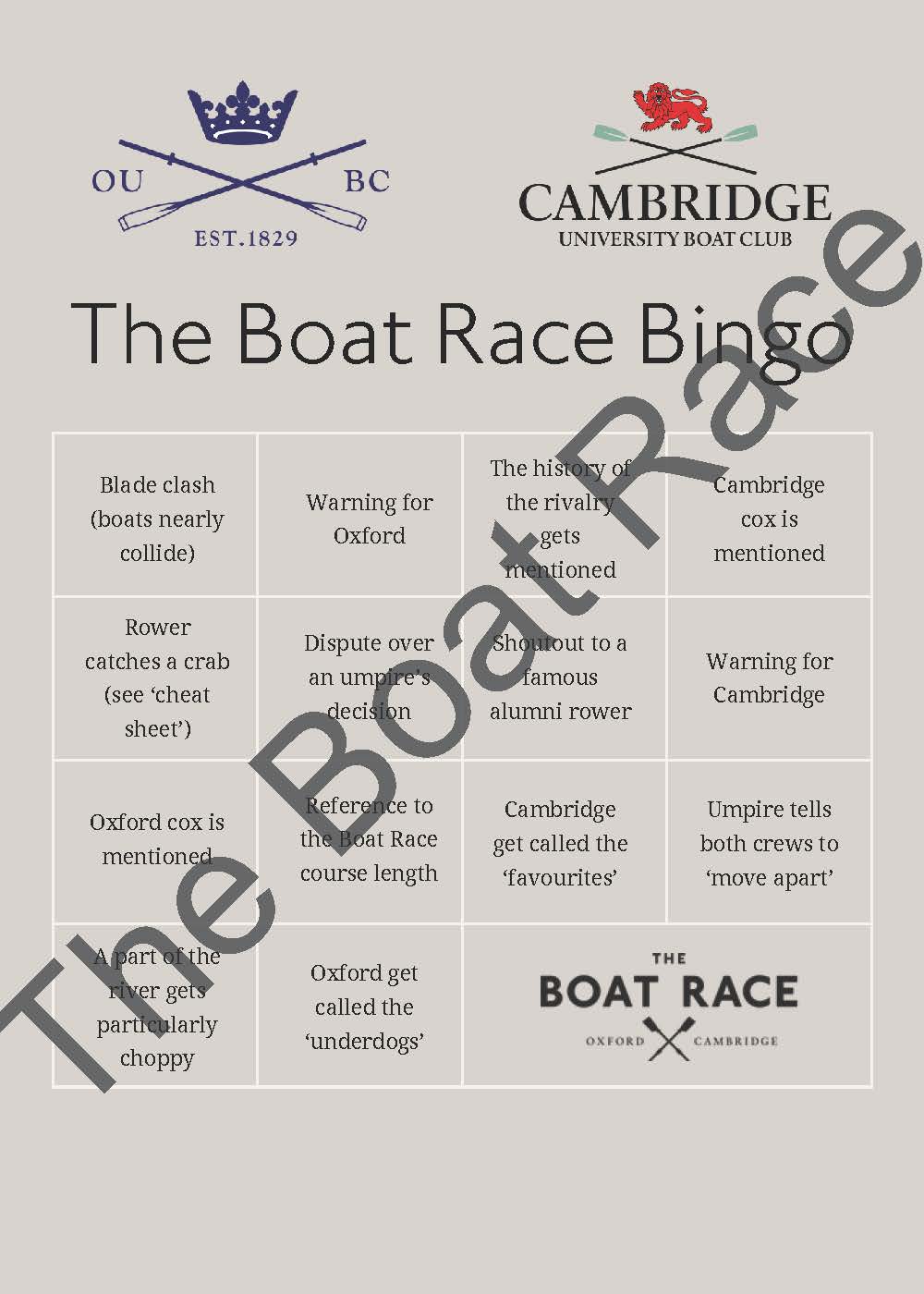 Start preparing for Boat Race day now by downloading your free pack.